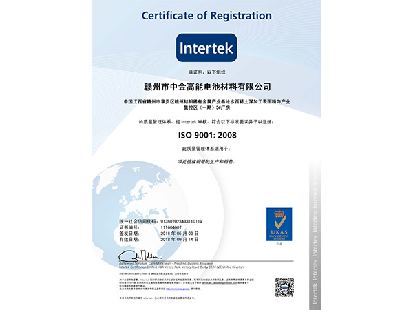 首頁 > 贛州市中金高能電池材料有限公司 > 榮譽(yù)證書
